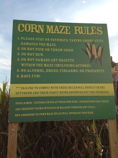 After the race we went to the Corn Maze. At night it's haunted and we didn't think P was quite ready for this so we went this afternoon. This was the first time I had been through a corn maze. It was a little warm, be it's was lots of fun!!!